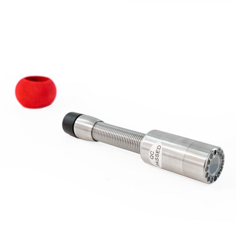 Náhradná kamerová hlavica pre inšpekčnú kameru OXE InspCam 30 SD . Kamerová jednotka je umiestnená v červenej penovej ochrane, ktorá chráni kamerovú jednotku pred jej poškriabaním alebo zničením.