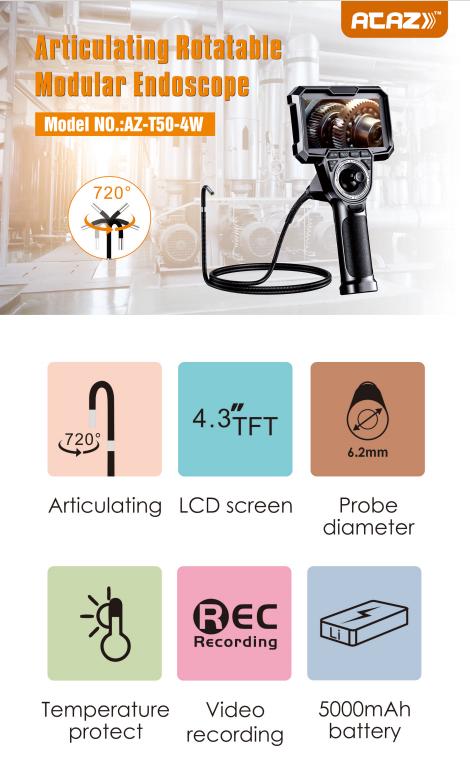 OXE ED-801 je profesionálna endoskopická kamera určená na technické prehliadky, servisné práce a presnú diagnostiku v miestach, kam sa bežné zariadenia nedostanú. Kamera je vybavená 4-cestnou mechanicky ovládanou hlavou kamery s dvoma objektívmi, ktorá umožňuje presné nasmerovanie objektívu bez potreby manipulácie s celým káblom.